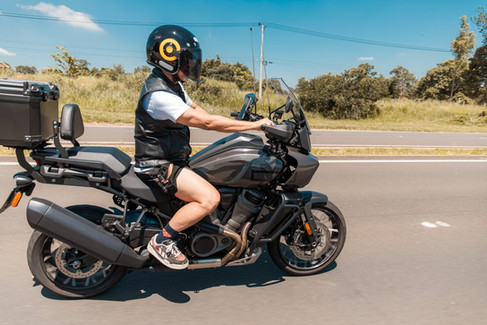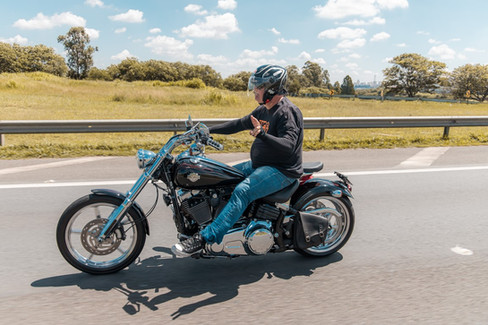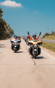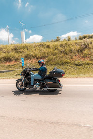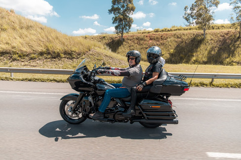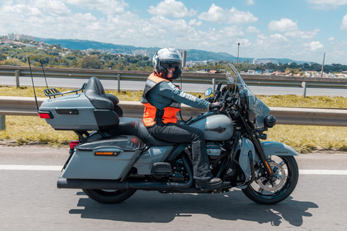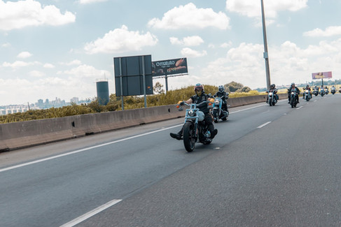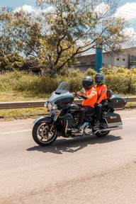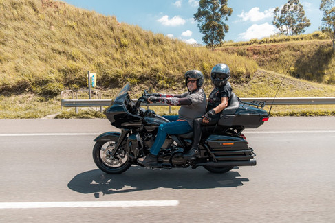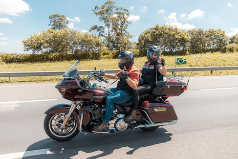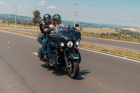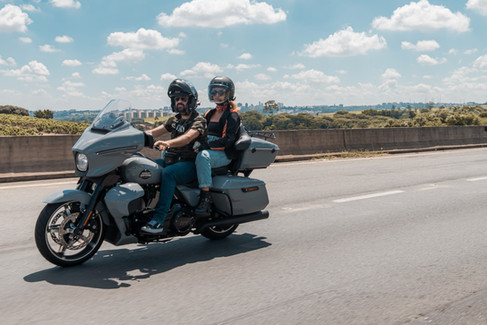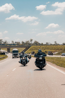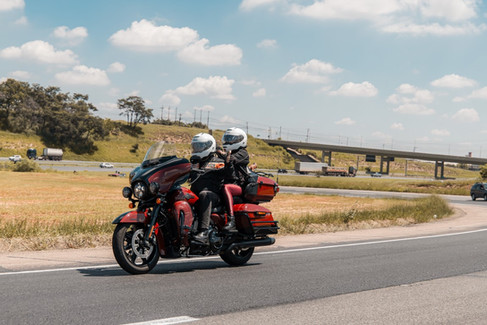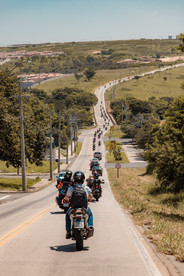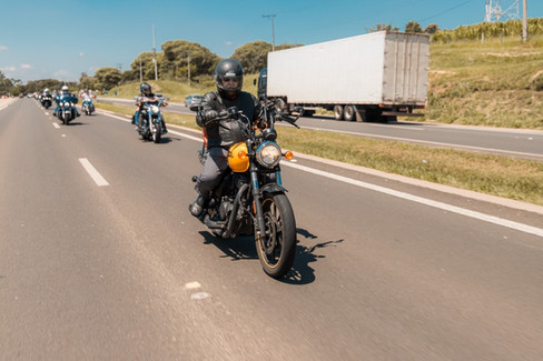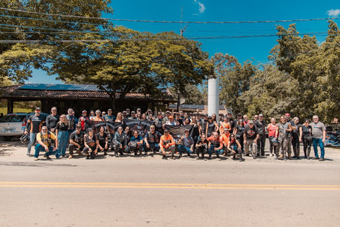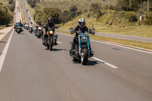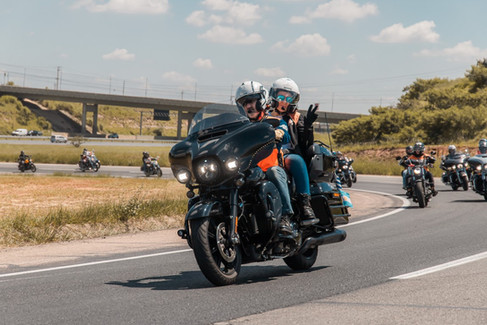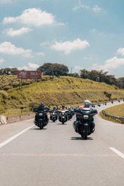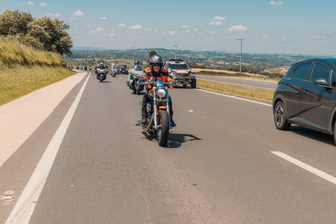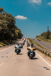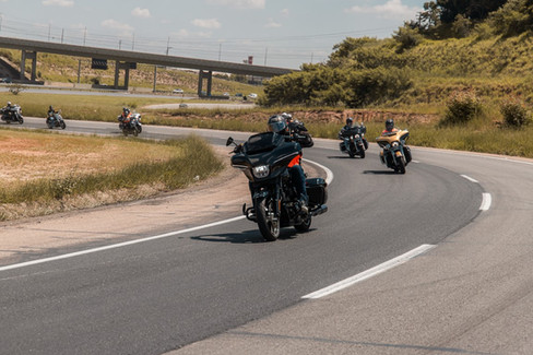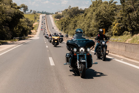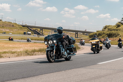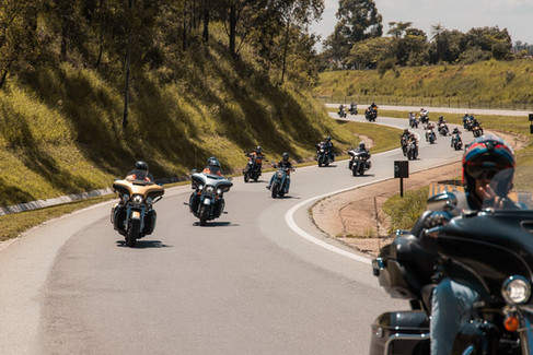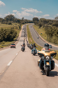 Ao todo, formamos um comboio de 55 motocicletas, cruzando os 97 quilômetros de estrada com segurança, vento no rosto e aquela energia que só quem acelera uma Harley conhece.